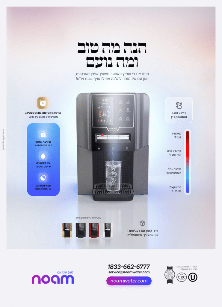 Noam 2 is a leading Israeli brand of premium hot and cold water bars, designed for weekdays and Shabbos. Now expanding to the U.S., it brings trusted innovation and convenience to American homes.
